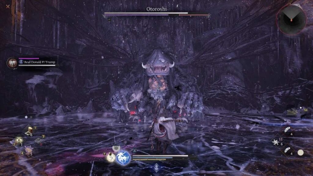 The real challenge of facing the Otoroshi comes when it stands up and gains access to ice-based movesets and attacks. But when you first encounter it, it remains on all fours and drags itself with its massive arms. The attacks themselves aren’t too complex, basically being wide swipes, ground slams, and two dangerous grab moves.